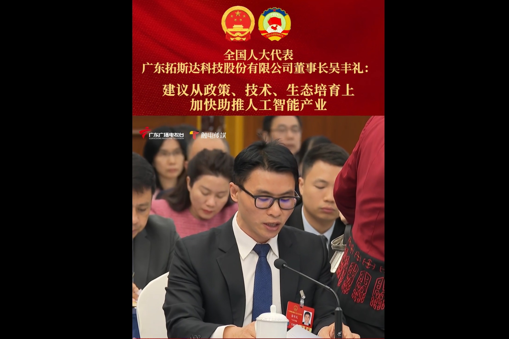 全国人大代表、拓斯达公司董事长吴丰礼:建议制定国家智能机器人产业发展规划对企业探索人工智能+机器人模式给予政策扶持