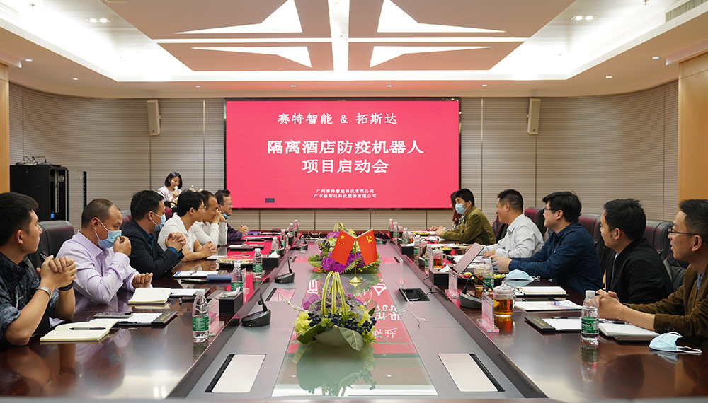 2022年4月1日下午,MK网(以下简称“拓斯达”,股票代码:300607)与广州赛特智能科技有限公司(以下简称“赛特智能”)“隔离酒店防疫机器人”项目启动仪式在拓斯达总部举行。赛特智能董事长李睿、副总经理张旭彪,拓斯达董事长兼总裁吴丰礼、副总裁杨双保、机器人事业部总经理张朋等双方高层代表出席启动仪式。会上,双方就隔离酒店防疫机器人战略合作项目达成共识,并签署战略合作协议。根据协议,双方将携手展开深度合作,重点推进防疫机器人的创新应用,用科技力量助力我国防疫抗疫。