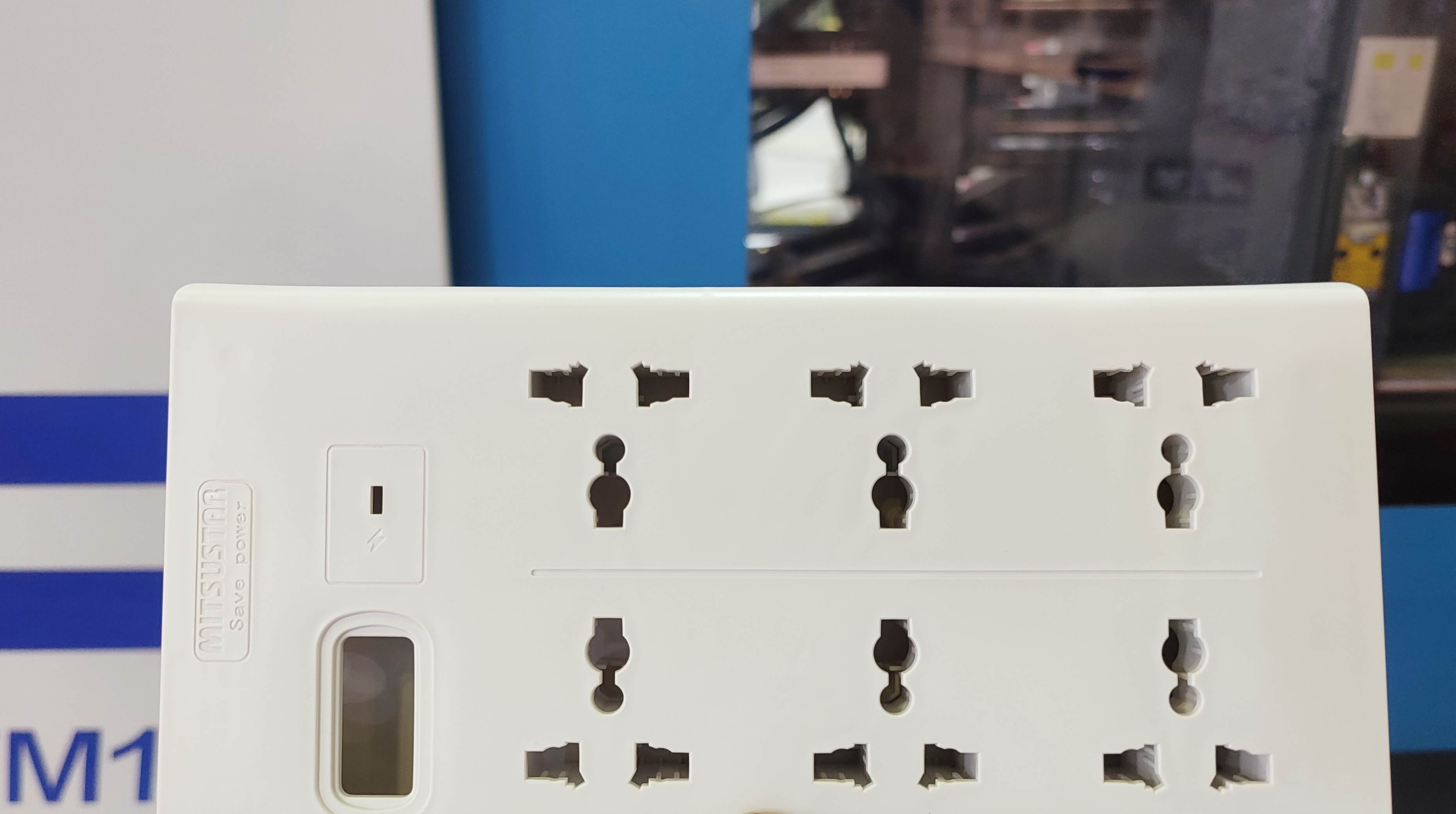 现场展示了TM170II注塑机生产日用插座盖的方案。拓斯达TM系列注塑机广泛应用于3C、家电、日化、汽配等多行业中。