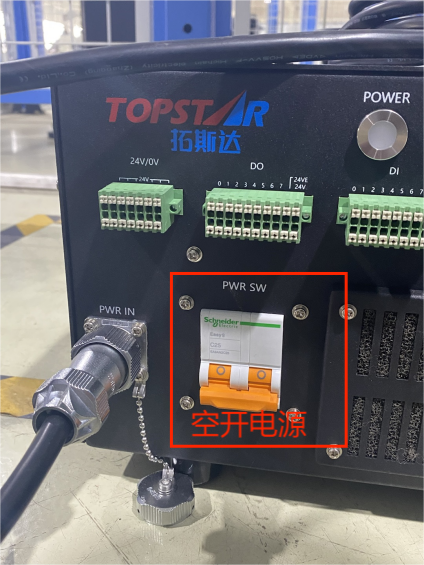 ○断电后确保各类急停有效,建议悬挂相关警示牌。断电请遵循正确断电流程:机器人空开电源-分闸电源一总电源。关闭机器人电源、液压及气压源。