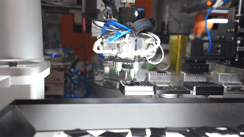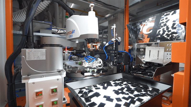 以±0.02毫米的重复定位精度抓取积木并对位放置在移印载具上,确保了移印图案的一致性,使积木表情等更精致、更传神。