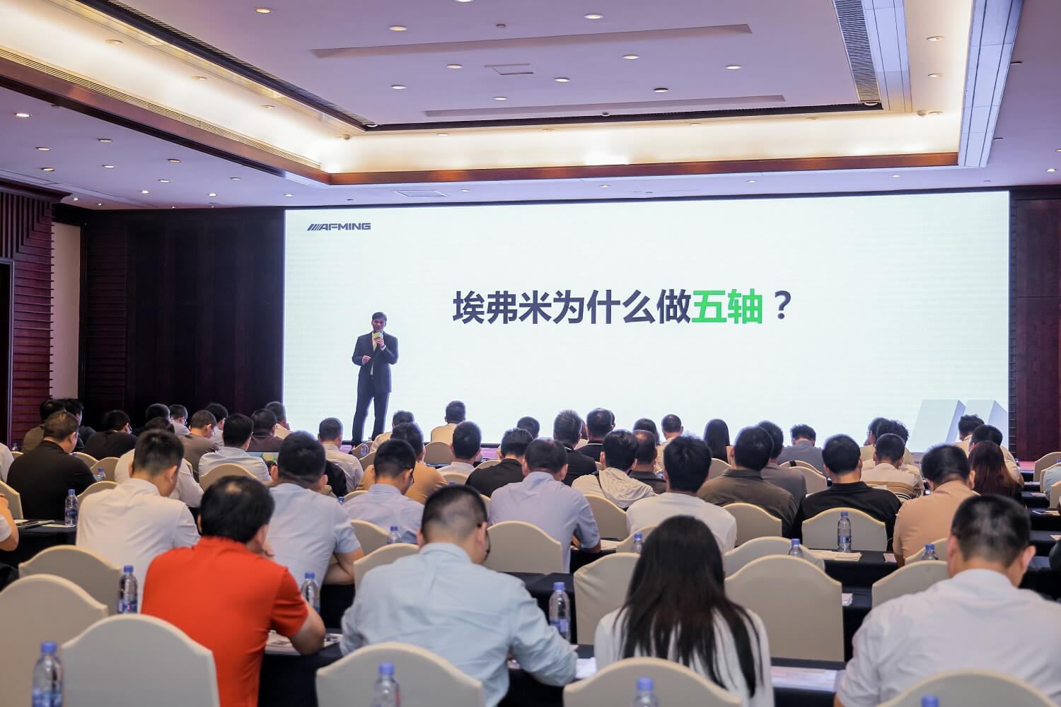 在主论坛环节,埃弗米创始人、总经理黄永生先生发表题为《过去·现在·未来》的主题演讲,回顾埃弗米做五轴的初心、目前埃弗米做好五轴具备的条件和能力、产品矩阵、全国化布局及合作伙伴生态理念,并提出未来埃弗米将走好“三步棋”——“两用四高六中心”,坚定推进高端五轴普及化。