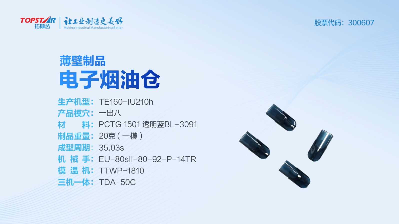 优势:全新一代拓斯达TE系列带驱伺服电动注塑机,技术运用锁模、开模、射胶、熔胶主动作全电动控制;喷嘴接触、抽芯、顶针等辅助动作为伺服液压控制。提供精密稳定、快速强劲的锁模、熔胶、射胶系统,适用于更广的注塑工艺窗口;辅助系统同时能耗降低而提高生产效率。