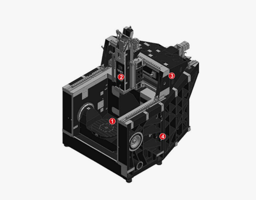 GMU-800系列是目前为数不多能胜任重型铣削加工的五轴联动加工中心,通过搭载德国高端主轴技术及高刚性大扭矩的齿轮传动A/C摇篮转台技术,结合精准分析及优化床身结构,轻松应对各种材质的高速、高效、高精的加工要求。